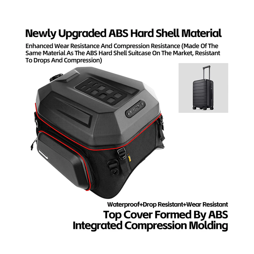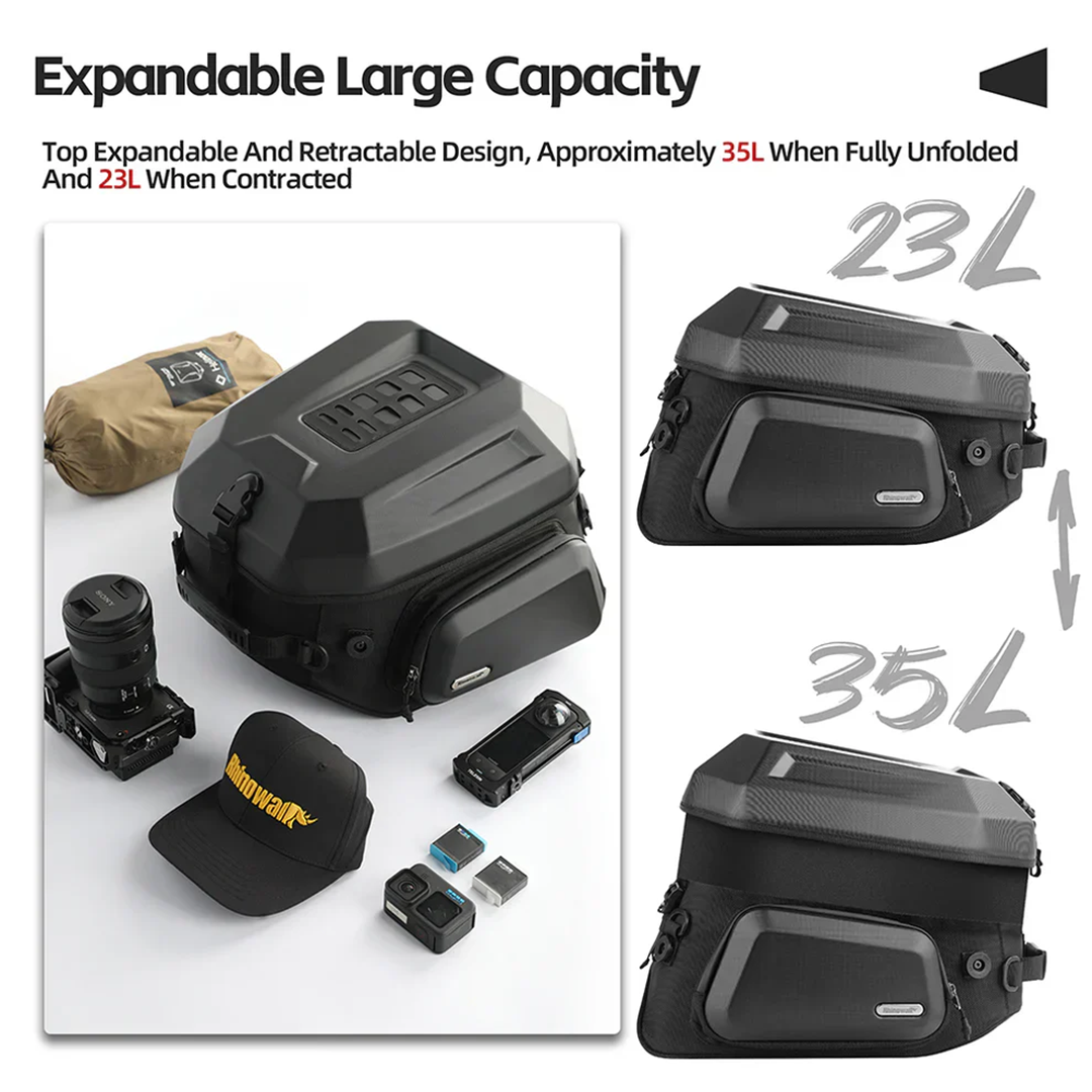 Rhinowalk MFT2310 Motorcycle ABS Hard Shell Tail Bag Expandable 23-35L -Tas Sepeda Motor - BLACK